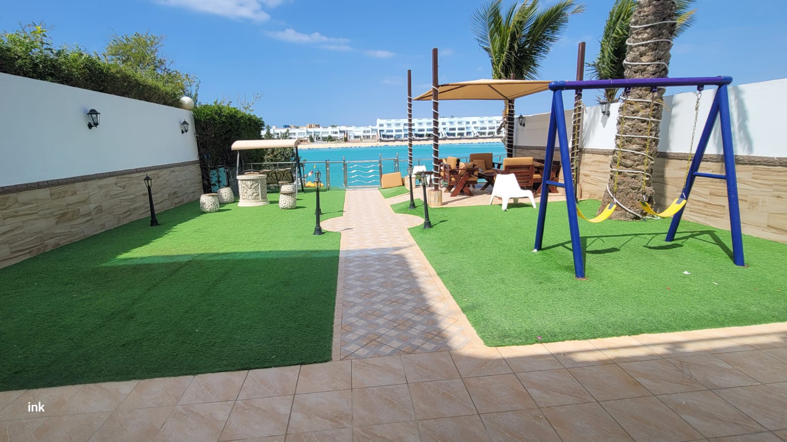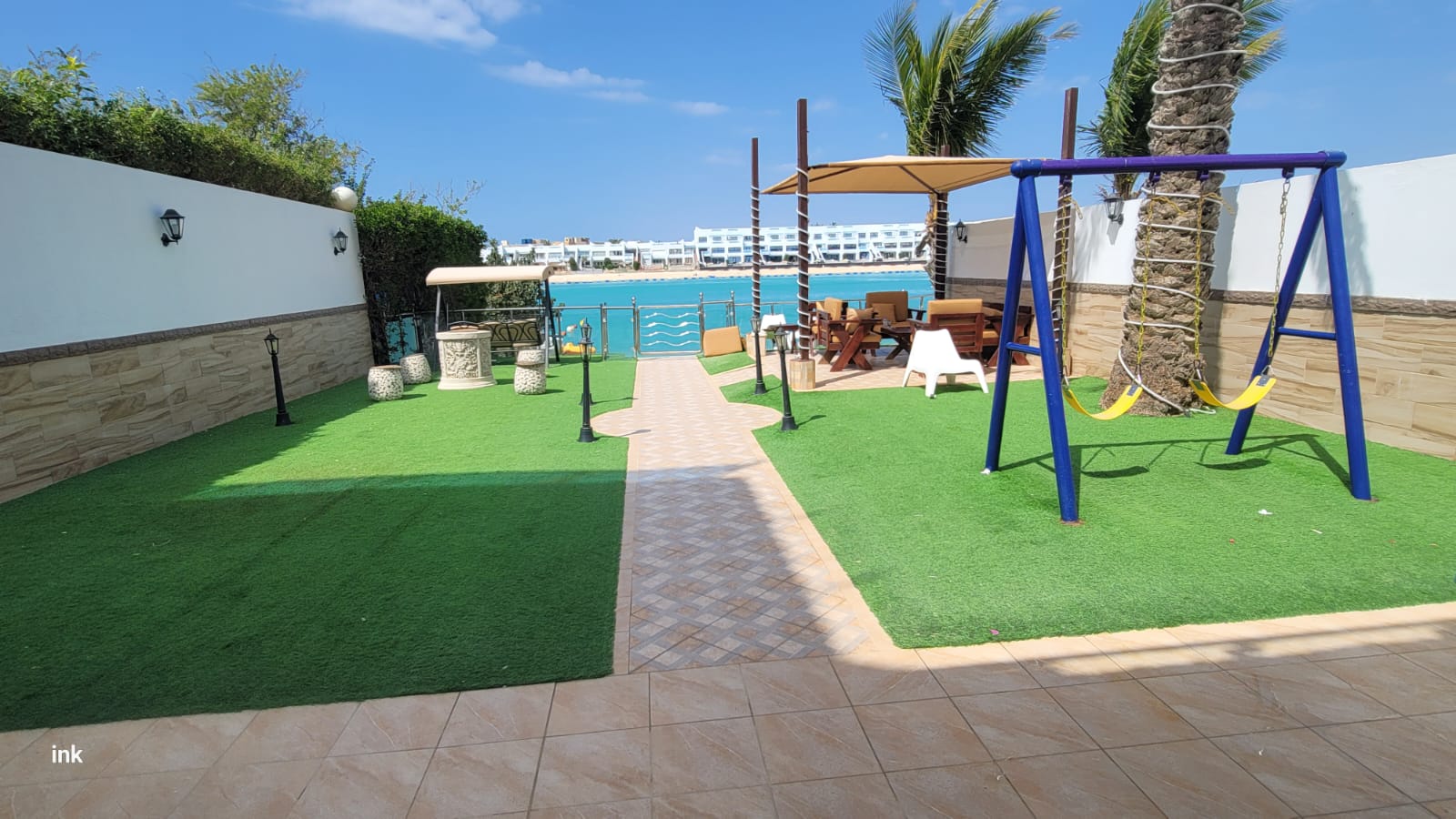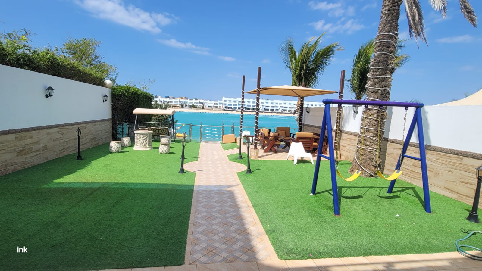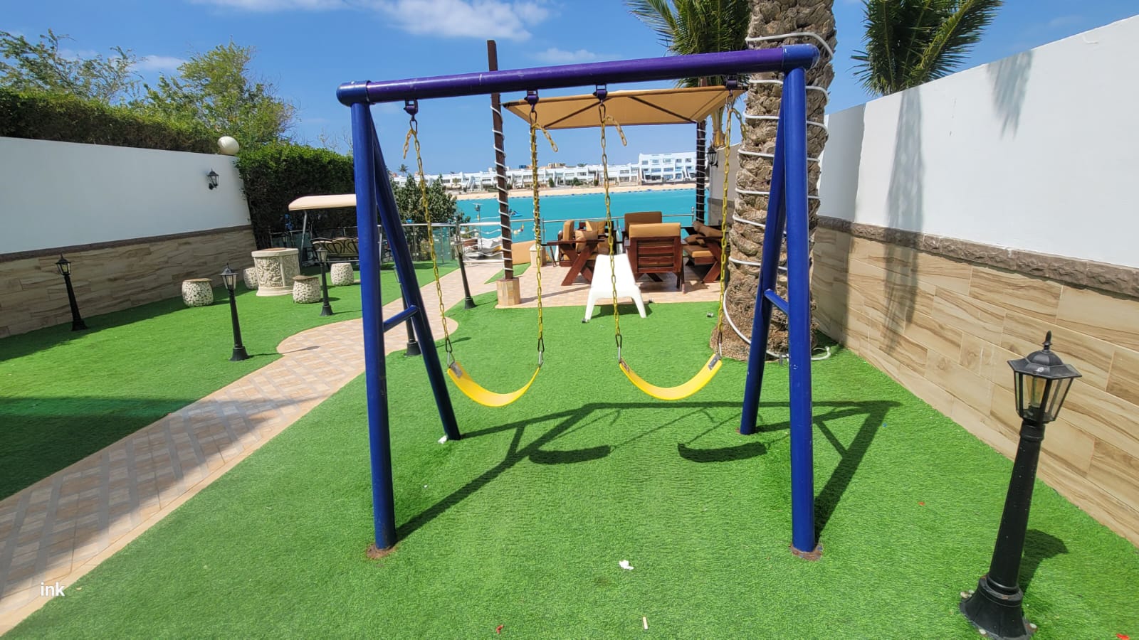 أما المساحات الخارجية، فتضم مسبحًا خاصًا للاستمتاع بالسباحة، وشاطئ رملي مثالي للاسترخاء. للأطفال، هناك منطقة ألعاب مخصصة لهم. الحديقة المطلة على الشاطئ تُعد مكانًا رائعًا للجلسات الخارجية، حيث توجد طاولات جلوس للاستمتاع بالهواء النقي والمناظر الطبيعية.