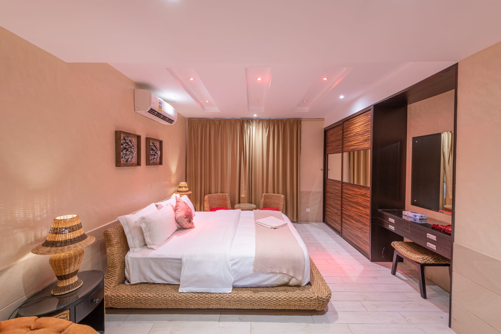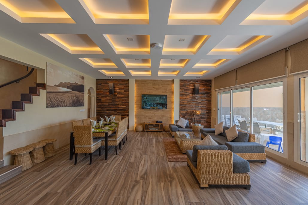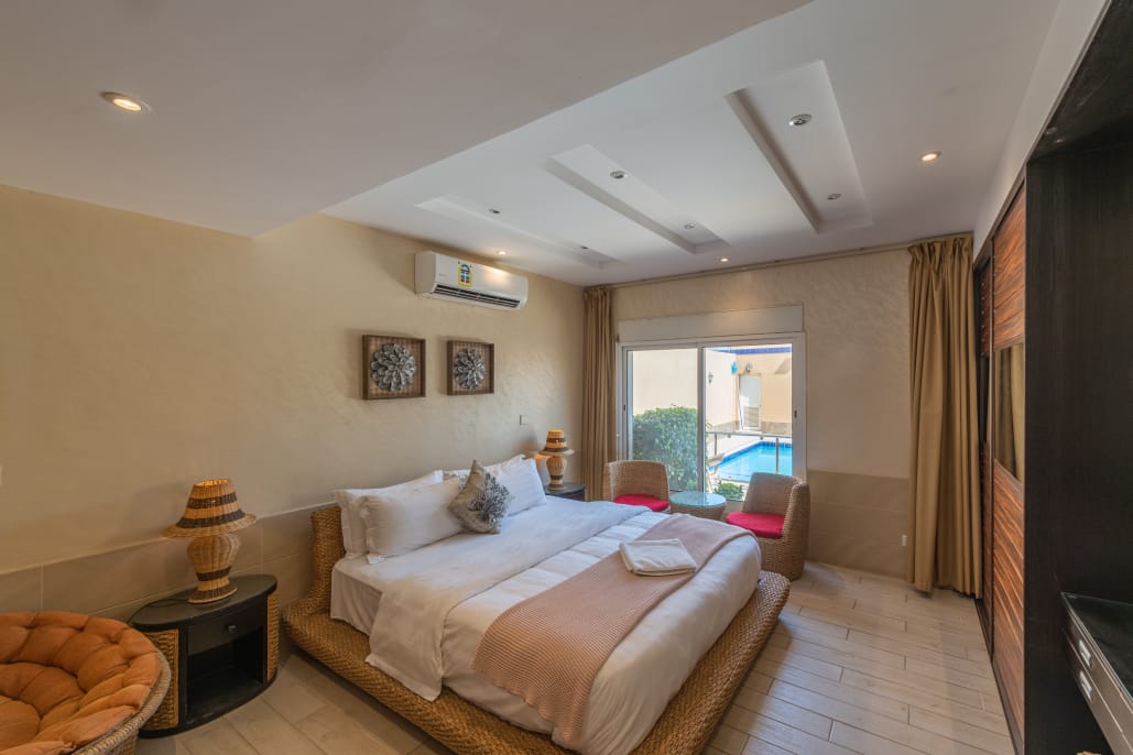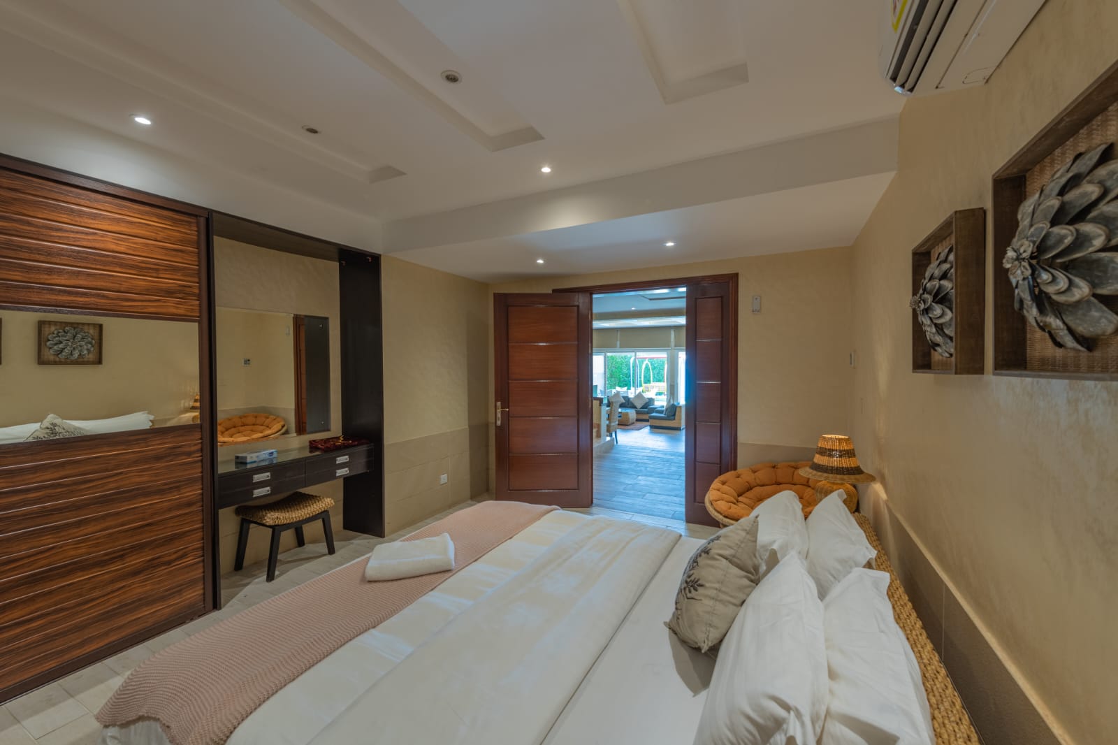 فيلا ماربيلا تُعد خيارًا مثاليًا لقضاء عطلة ممتعة ومريحة. تحتوي الفيلا على خمس غرف نوم، بما في ذلك غرفة رئيسية في الدور الأرضي، مما يجعلها مناسبة للعائلات الكبيرة أو المجموعات. تتميز الفيلا بصالة رئيسية كبيرة تطل مباشرة على الشاطئ، مما يوفر إطلالة ساحرة ومريحة.