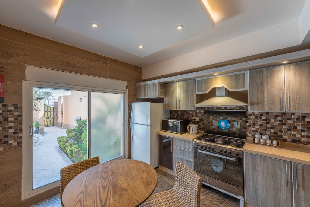 الحديقة المطلة على الشاطئ مجهزة بجلسات خارجية وطاولات جلوس، مما يجعلها مثالية لتناول الطعام في الهواء الطلق أو الاسترخاء وسط الطبيعة. كما توجد صالة مواجهة مباشرة للشاطئ، مما يعزز من جمال الإقامة. المطبخ مجهز بالكامل لتلبية جميع احتياجات الطهي.