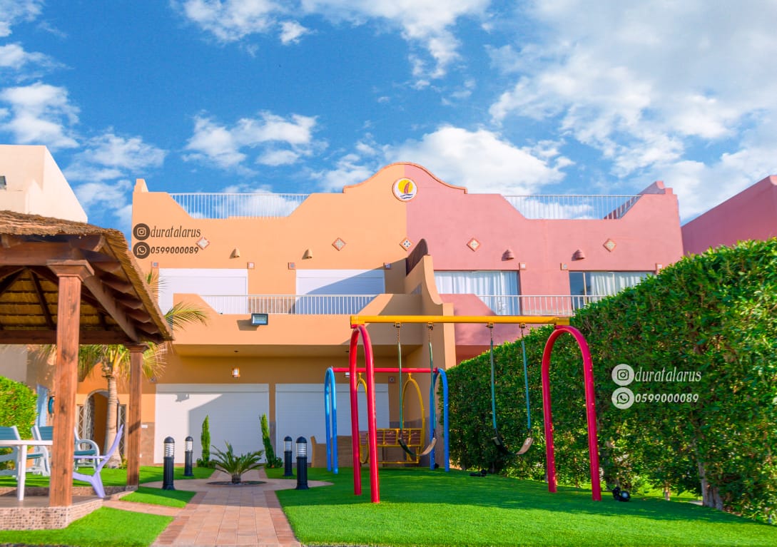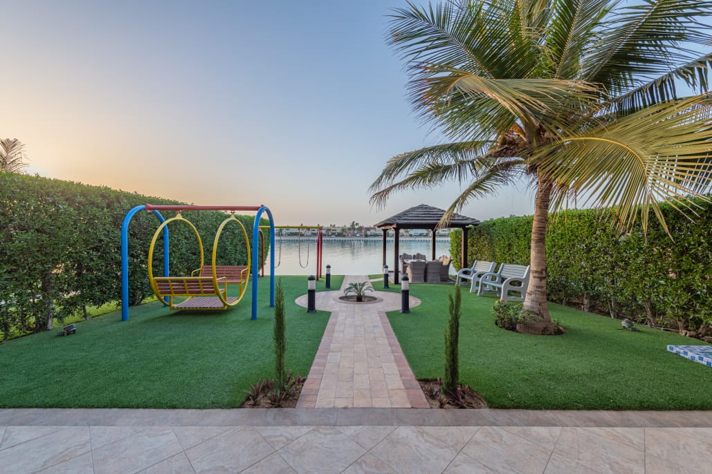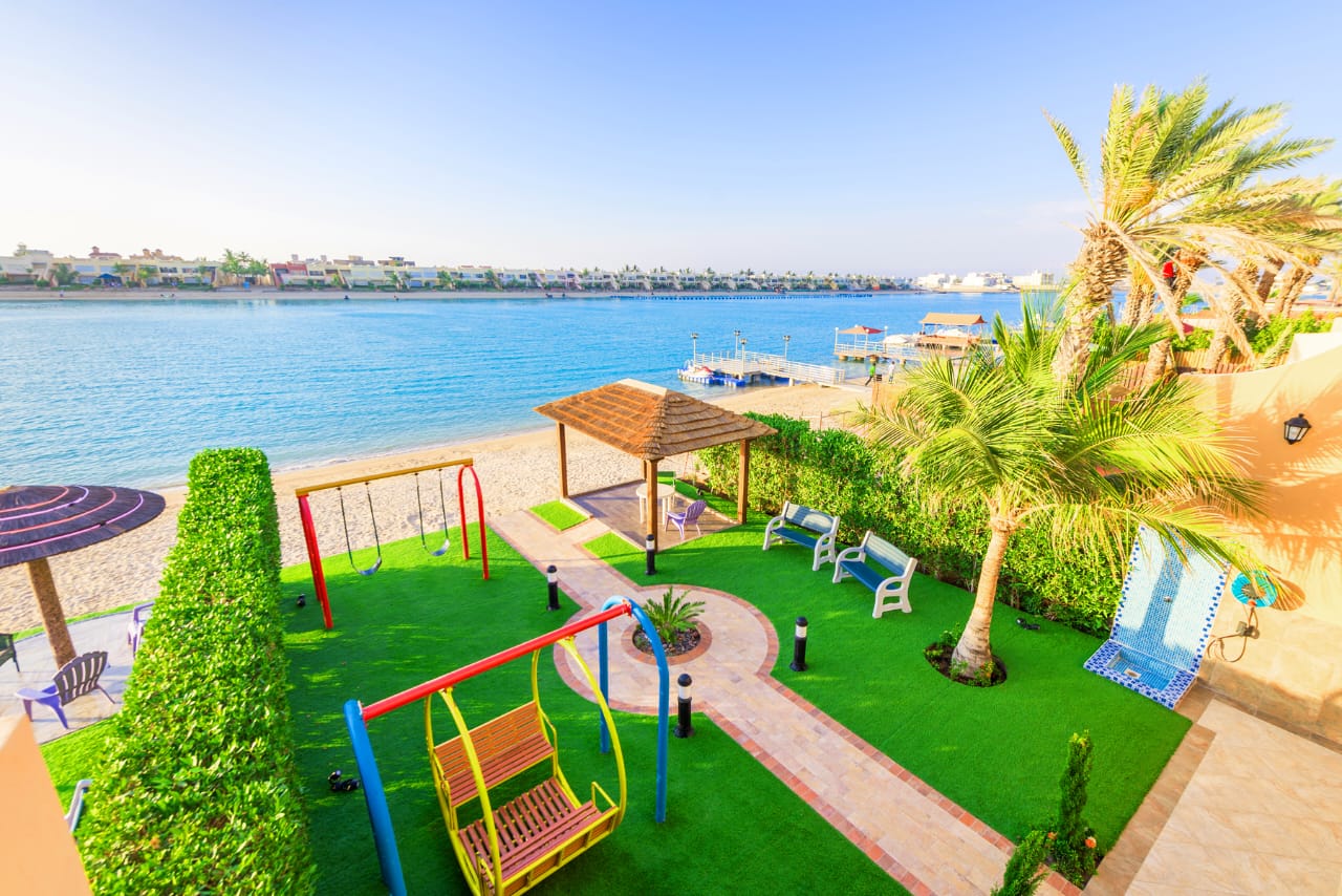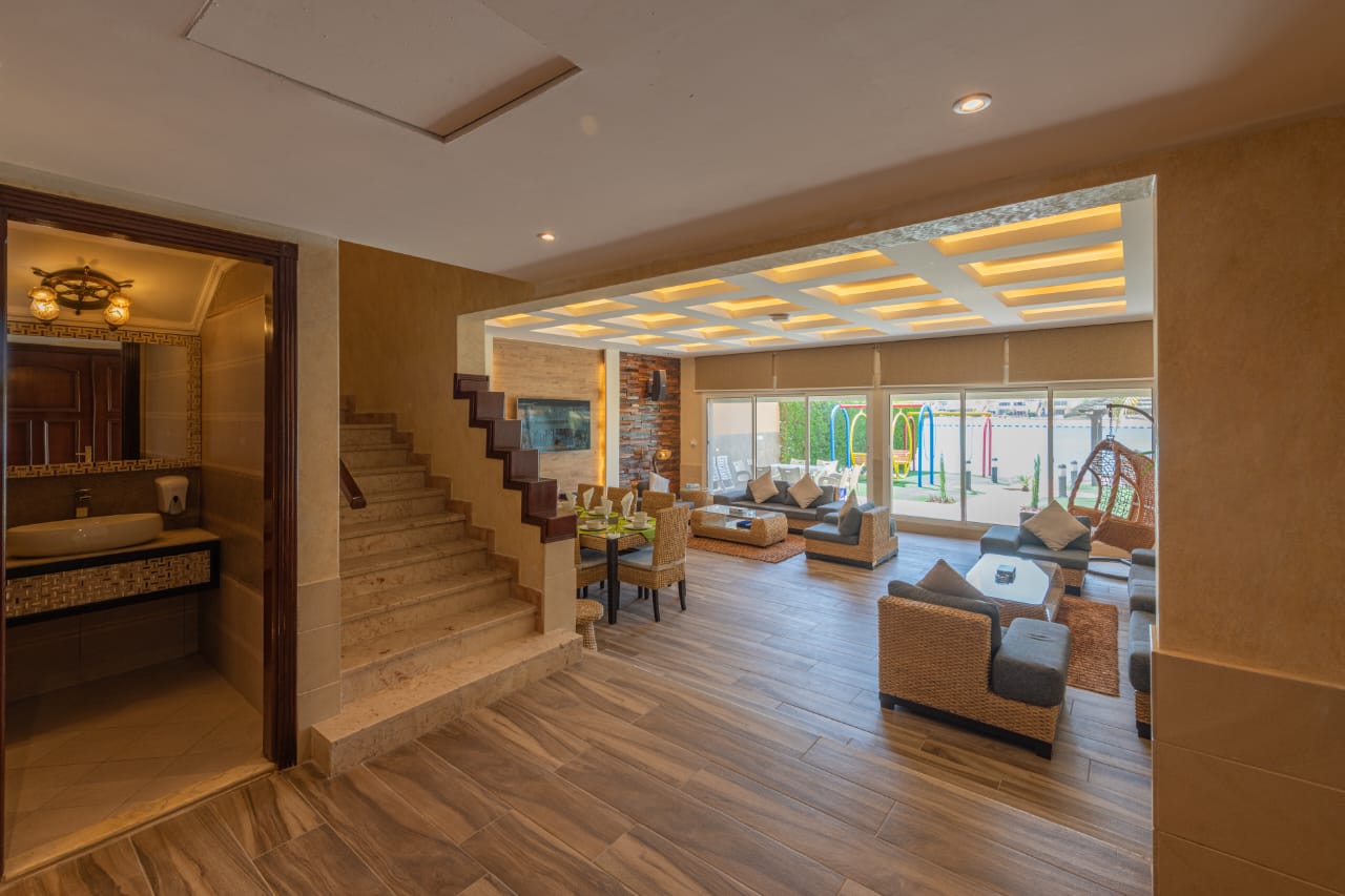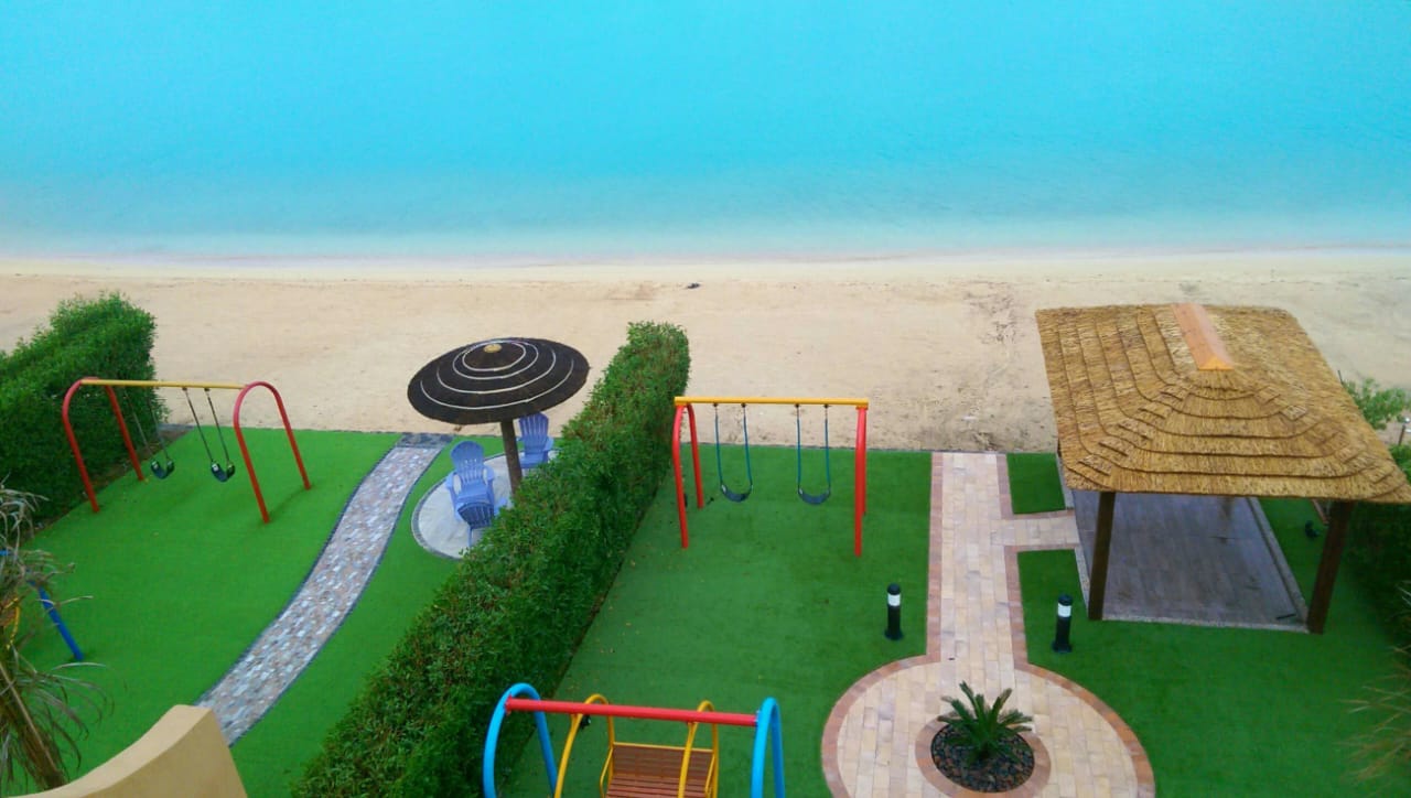 بالإضافة إلى ذلك، تحتوي الفيلا على خمس دورات مياه ومسبح خاص، مما يضمن تجربة فاخرة ومميزة. الشاطئ الرملي القريب يوفر فرصة رائعة للاستمتاع بالشمس والبحر، بينما يمكن للأطفال الاستمتاع بالألعاب المخصصة لهم في الحديقة.
