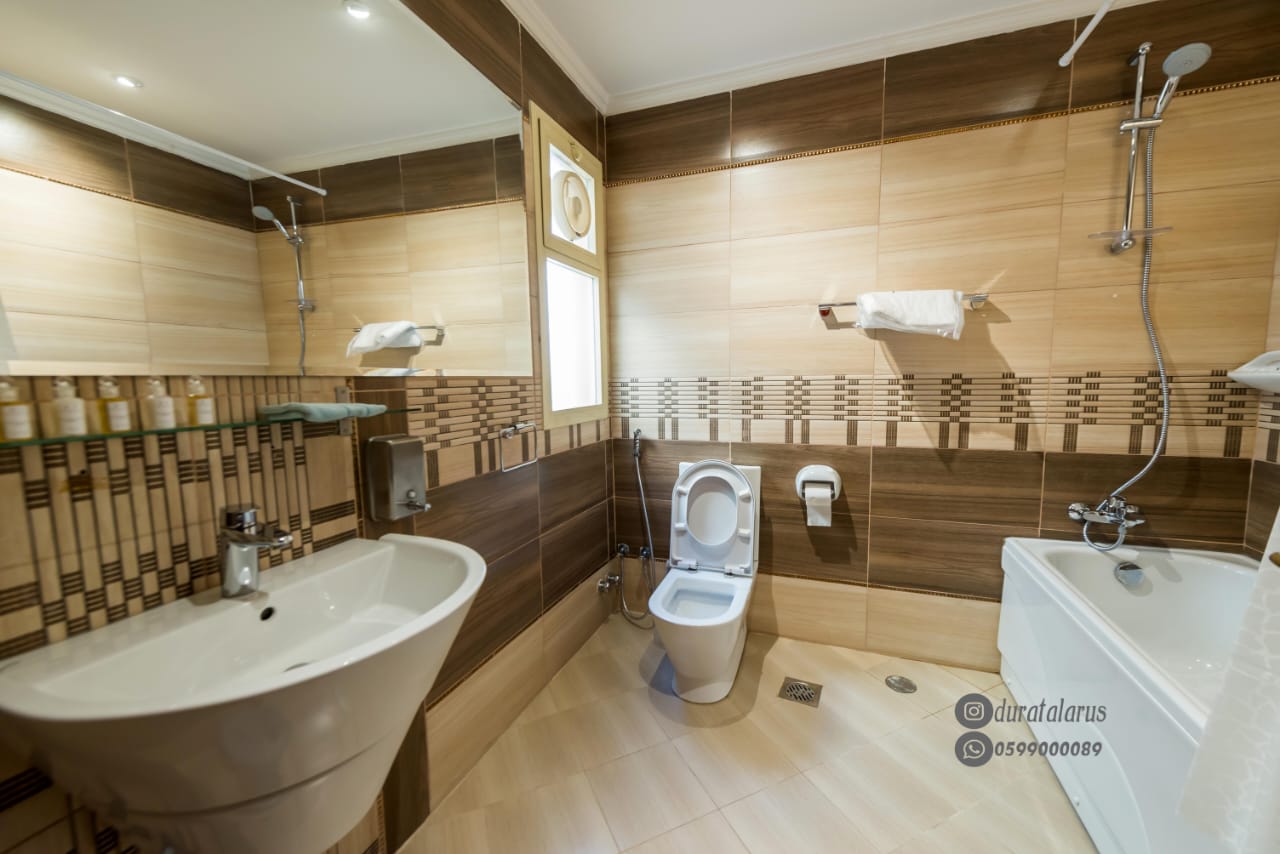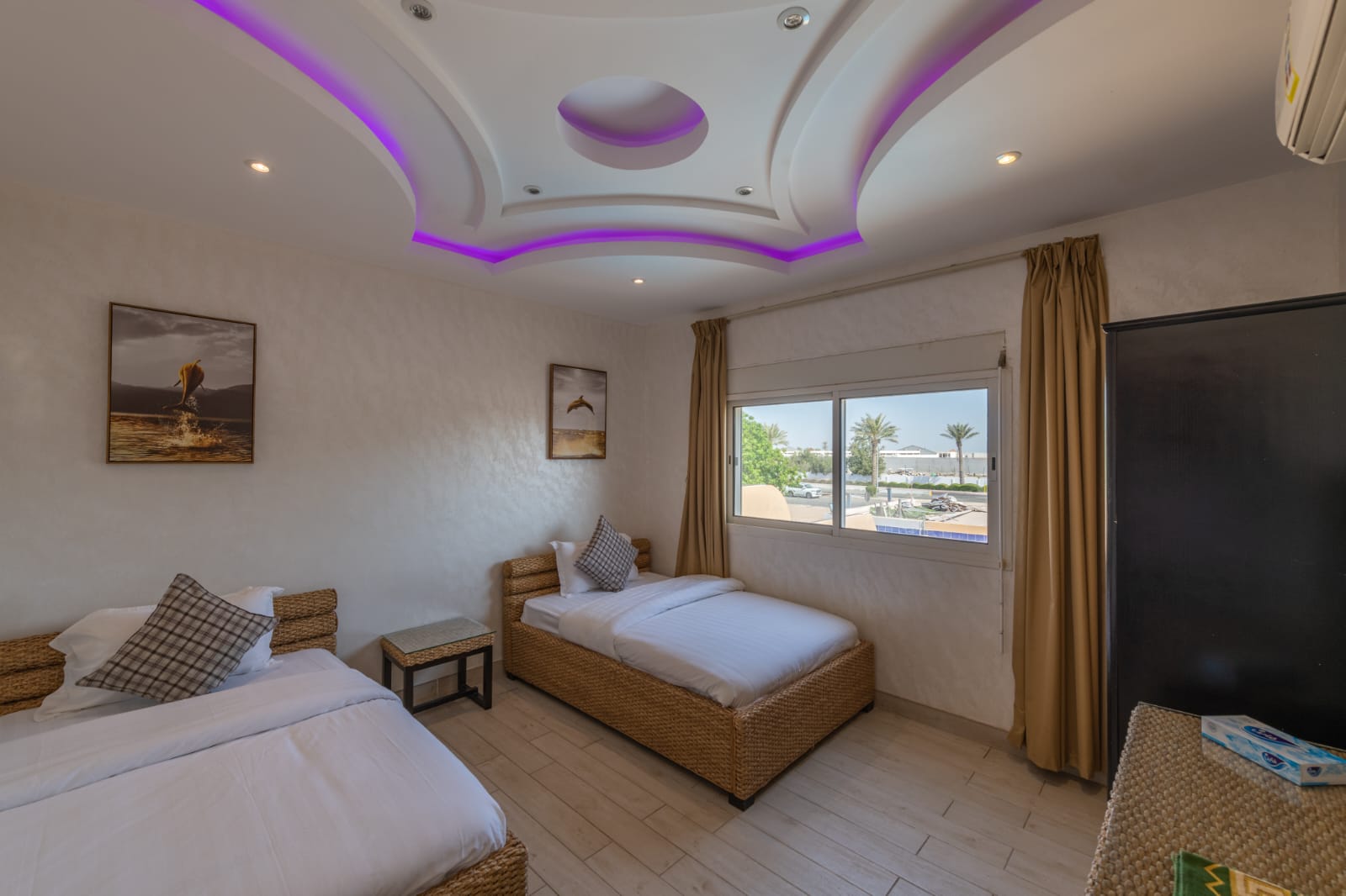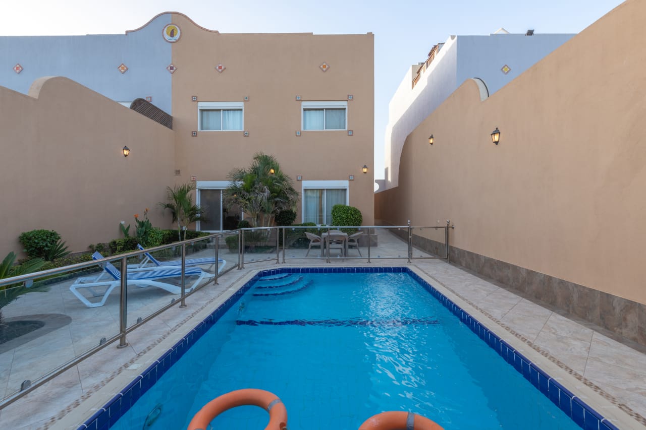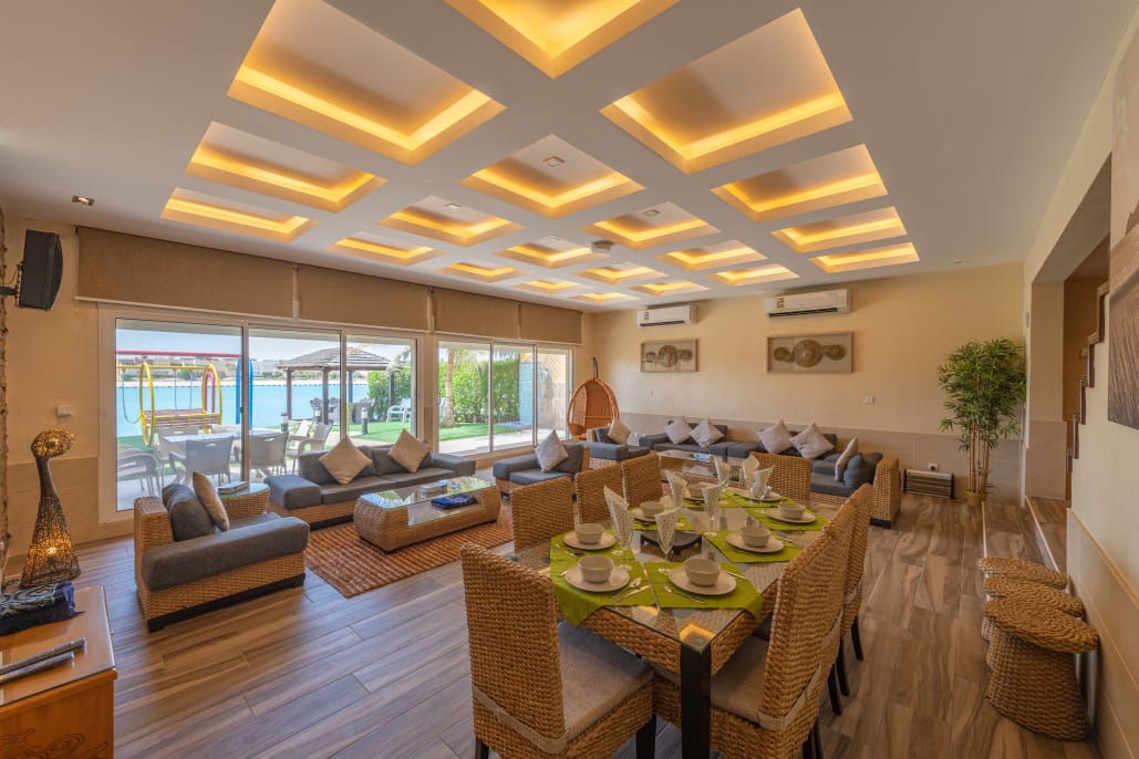 بالإضافة إلى ذلك، تحتوي الفيلا على خمس دورات مياه ومسبح خاص، مما يضمن تجربة فاخرة ومميزة. الشاطئ الرملي القريب يوفر فرصة رائعة للاستمتاع بالشمس والبحر، بينما يمكن للأطفال الاستمتاع بالألعاب المخصصة لهم في الحديقة.